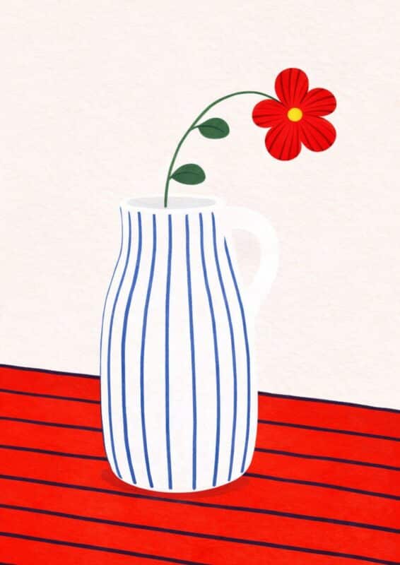 ¥3,080 – ¥6,080価格帯: ¥3,080 – ¥6,080北欧ミニマル 抽象 キャンバスアート|ブルーストライプピッチャー × レッドフラワー