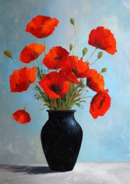 北欧ミニマル 抽象 キャンバスアート|レッドポピー ブラックベース