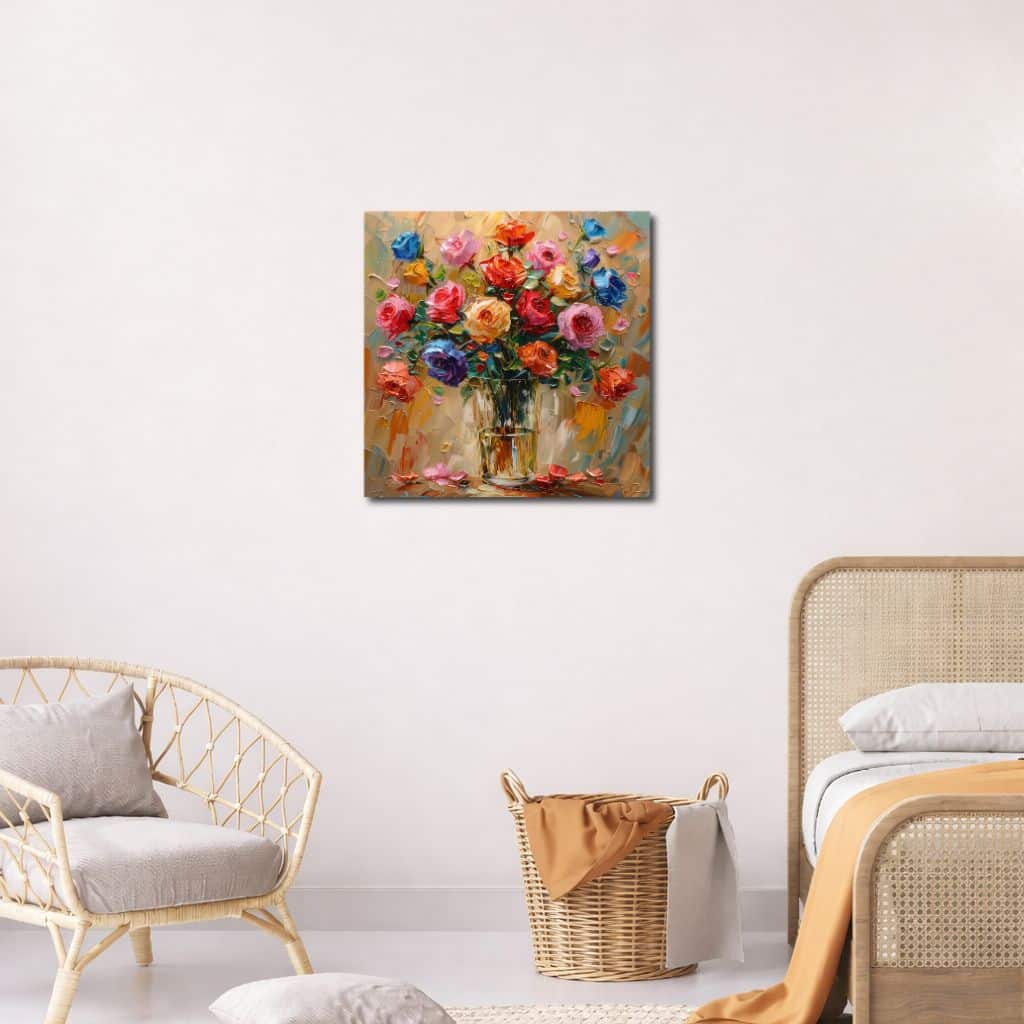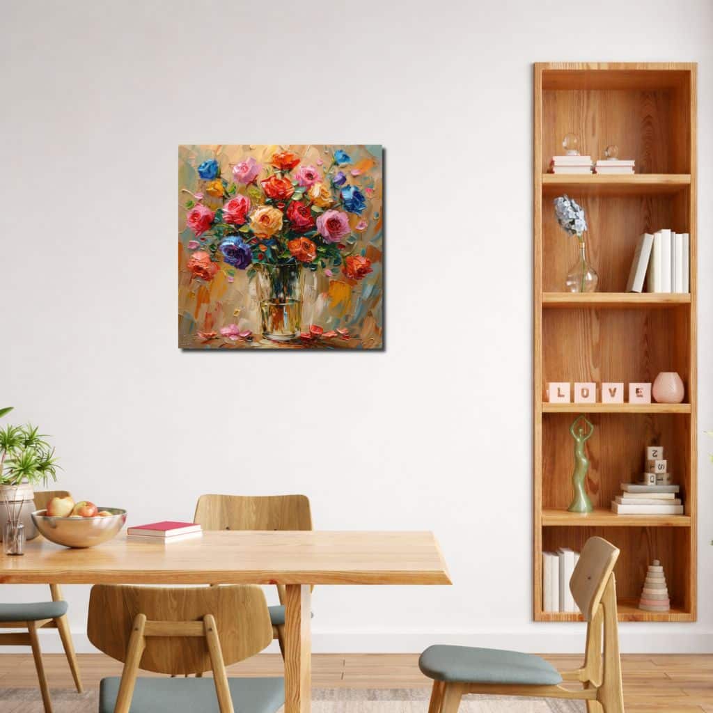 色とりどりのローズブーケが印象的な、北欧ミニマル 抽象 キャンバスアートです。