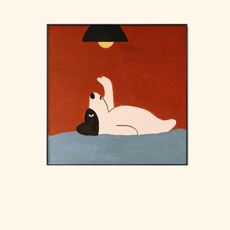 『ナイトライト・ドッグ』は、穏やかな夜のひとときを描いた癒しのアートポスターです。
