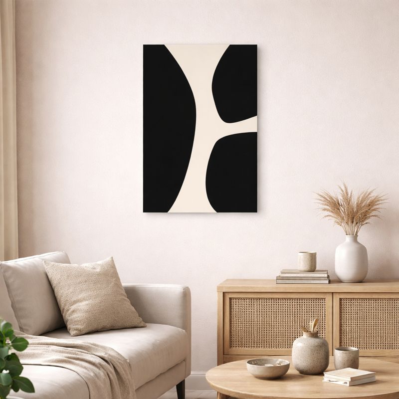 北欧ミニマル 抽象アート|ブラック×ベージュ 有機カーブ