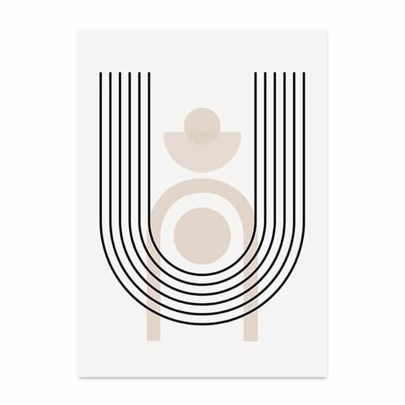 ベージュトーンの幾何フォルムで構成された抽象アート。