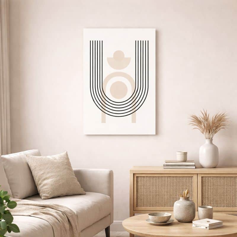 北欧ミニマル 抽象アート|ブラックライン ジオメトリック構図