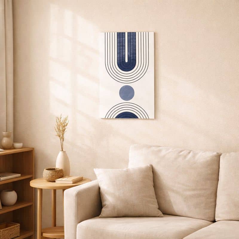 北欧ミニマル 抽象アートで描くブルーアーチの構成美