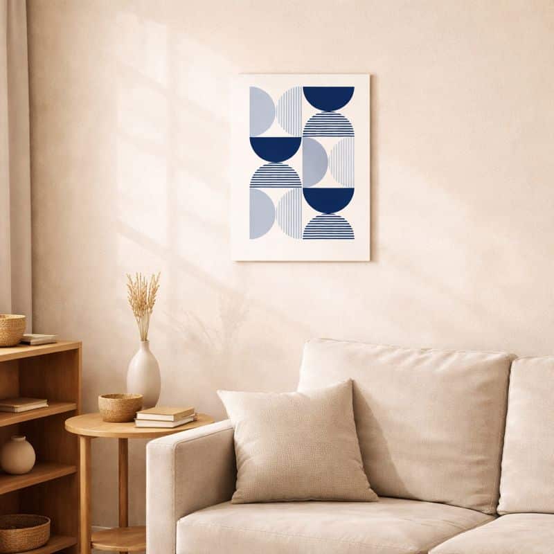 北欧ミニマル 抽象アート|ブルーセミサークル ジオメトリックパターン