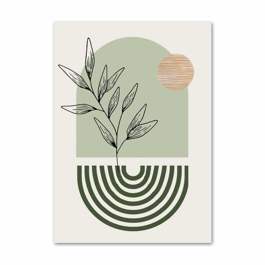 北欧ミニマル 抽象アート|ボタニカルラインとアーチフォルムの調和デザイン