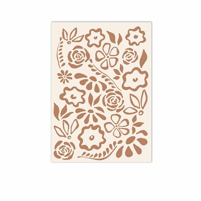 ブラウンラインで花や葉のモチーフを描いた、