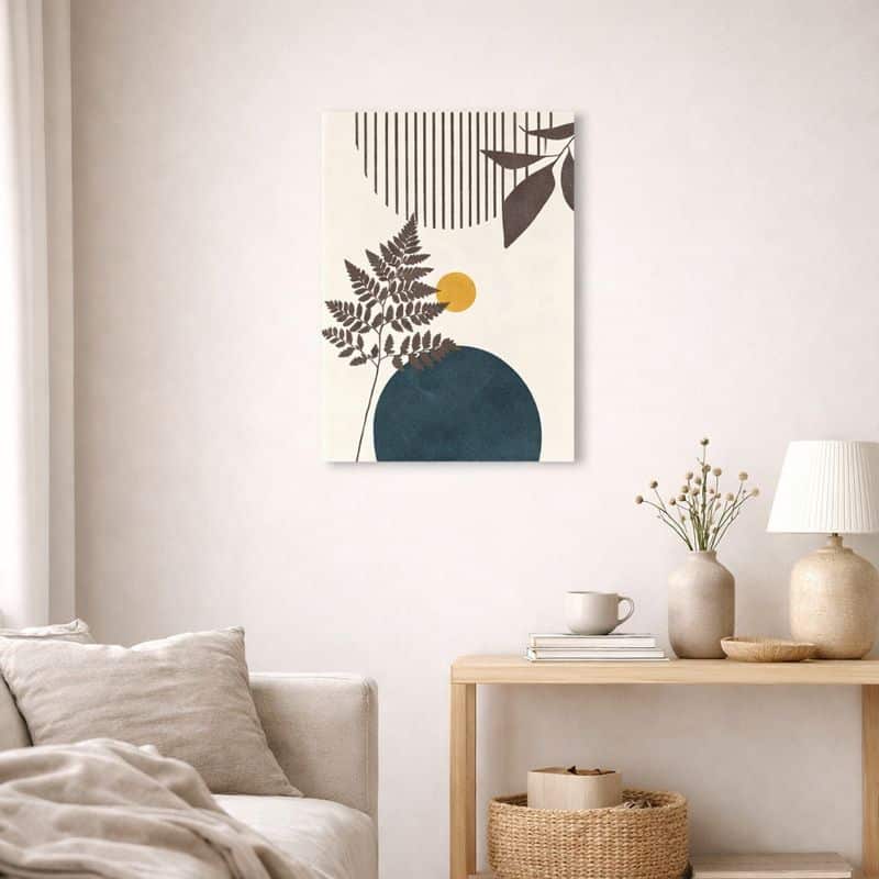 北欧ミニマル 抽象アート|サークルラインとボタニカルモチーフ