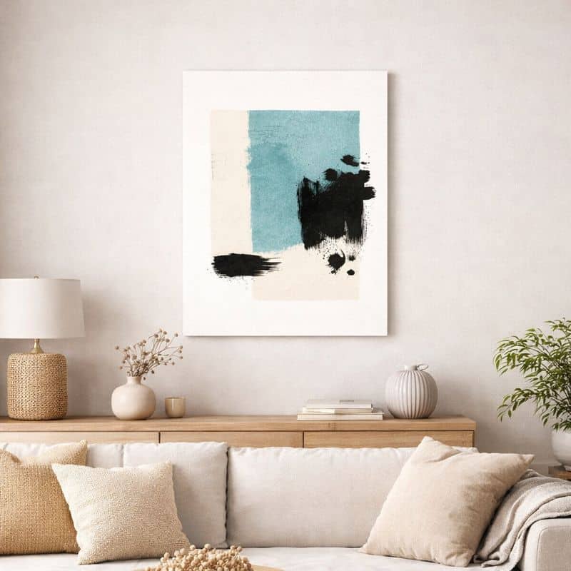 “北欧ミニマル 抽象 キャンバスアート|カラーブロックとブラックブラッシュの抽象デザイン” の口コミを投稿します