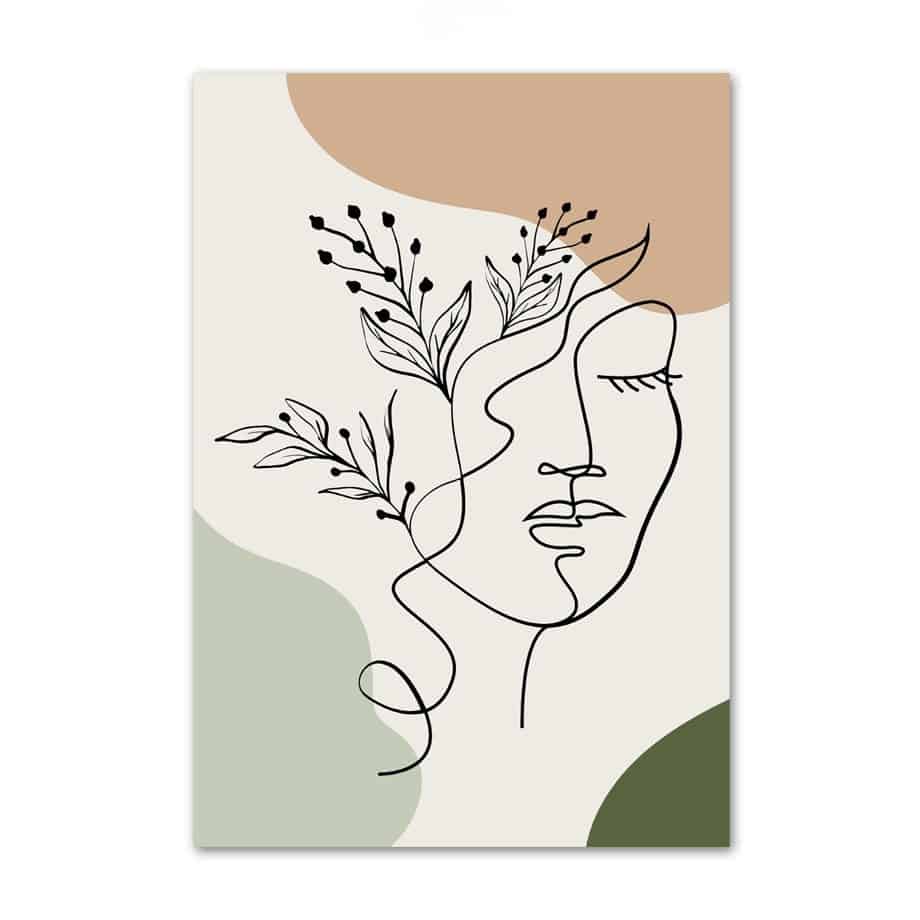 北欧ミニマル 抽象 キャンバスアート|フェイスライン × ボタニカルリーフ