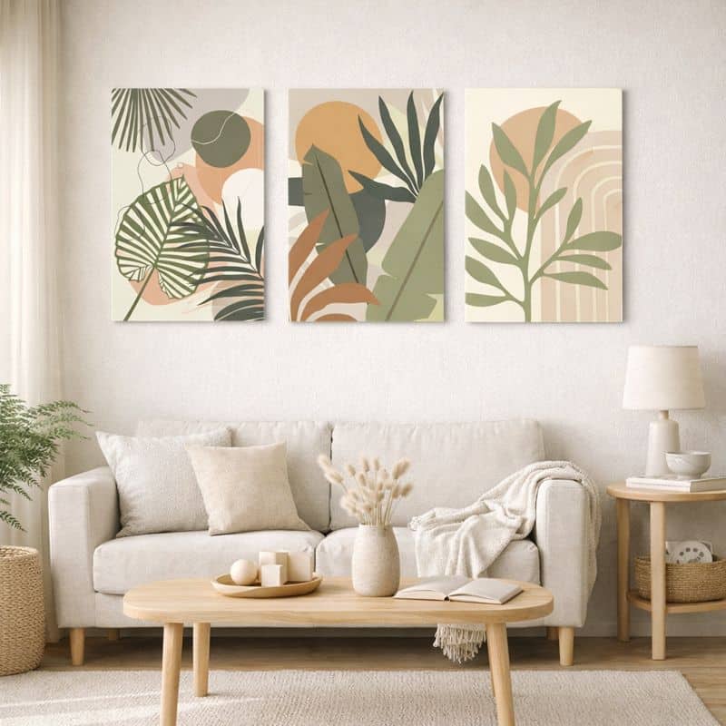 北欧ミニマル 抽象アートで描くリーフラインとサンアーチ
