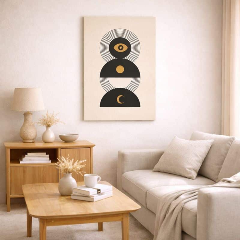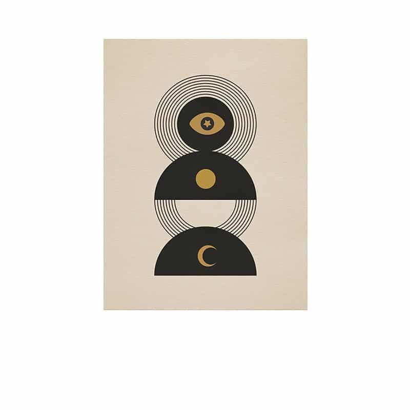 北欧ミニマル 抽象 キャンバスアート|ムーンシンボルと幾何構成