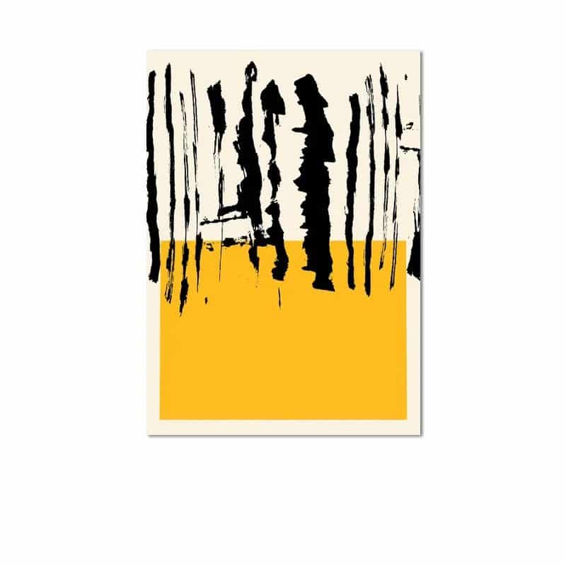 北欧ミニマル 抽象アート|マスタードイエローとブラックブラッシュ