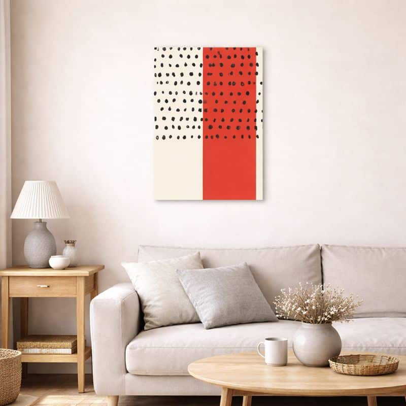 北欧ミニマル 抽象アート|レッドブロックとドットパターン