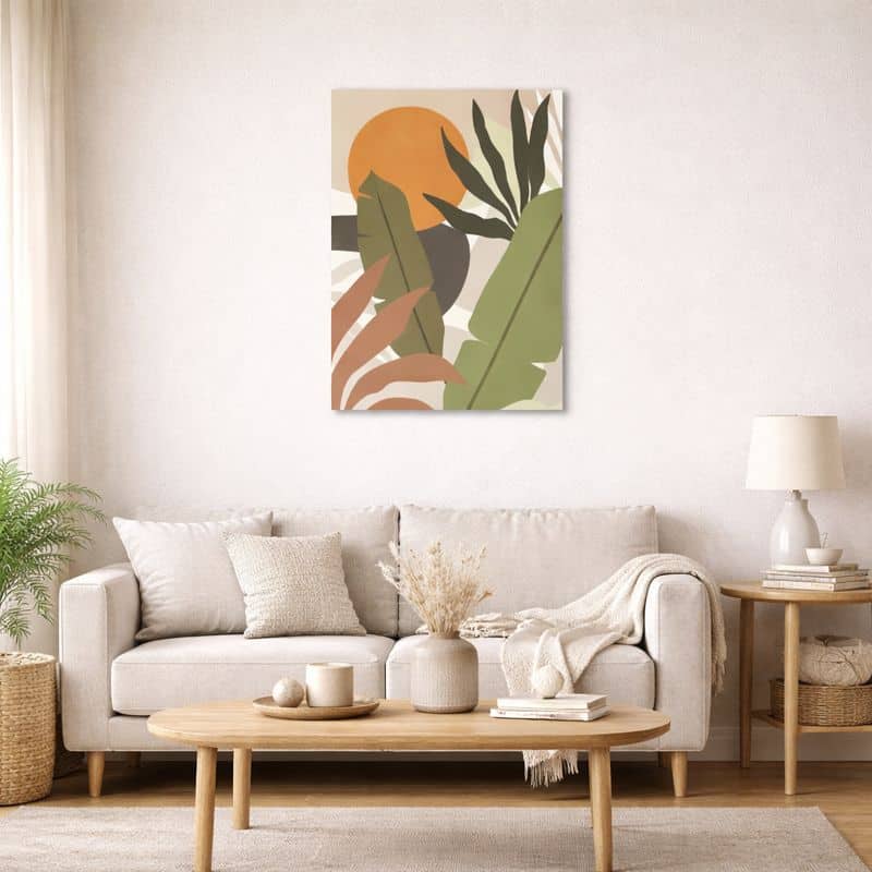 北欧ミニマル 抽象アートで描くサンモチーフとボタニカルフォルム