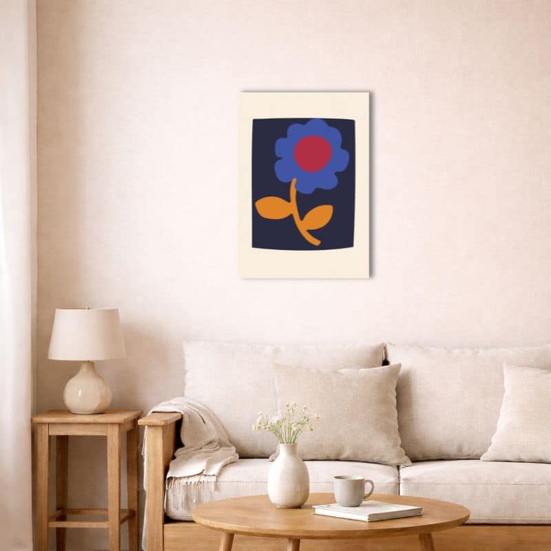 北欧ミニマル 抽象 キャンバスアートが描く印象的なブルーフラワー