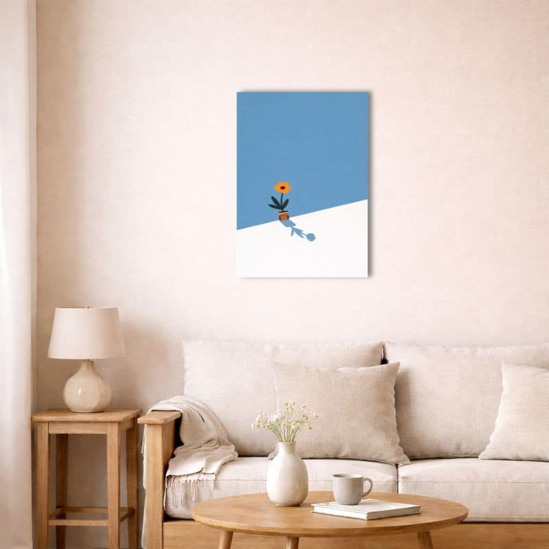 北欧ミニマル 抽象 キャンバスアート|ブルーバック × オレンジフラワー