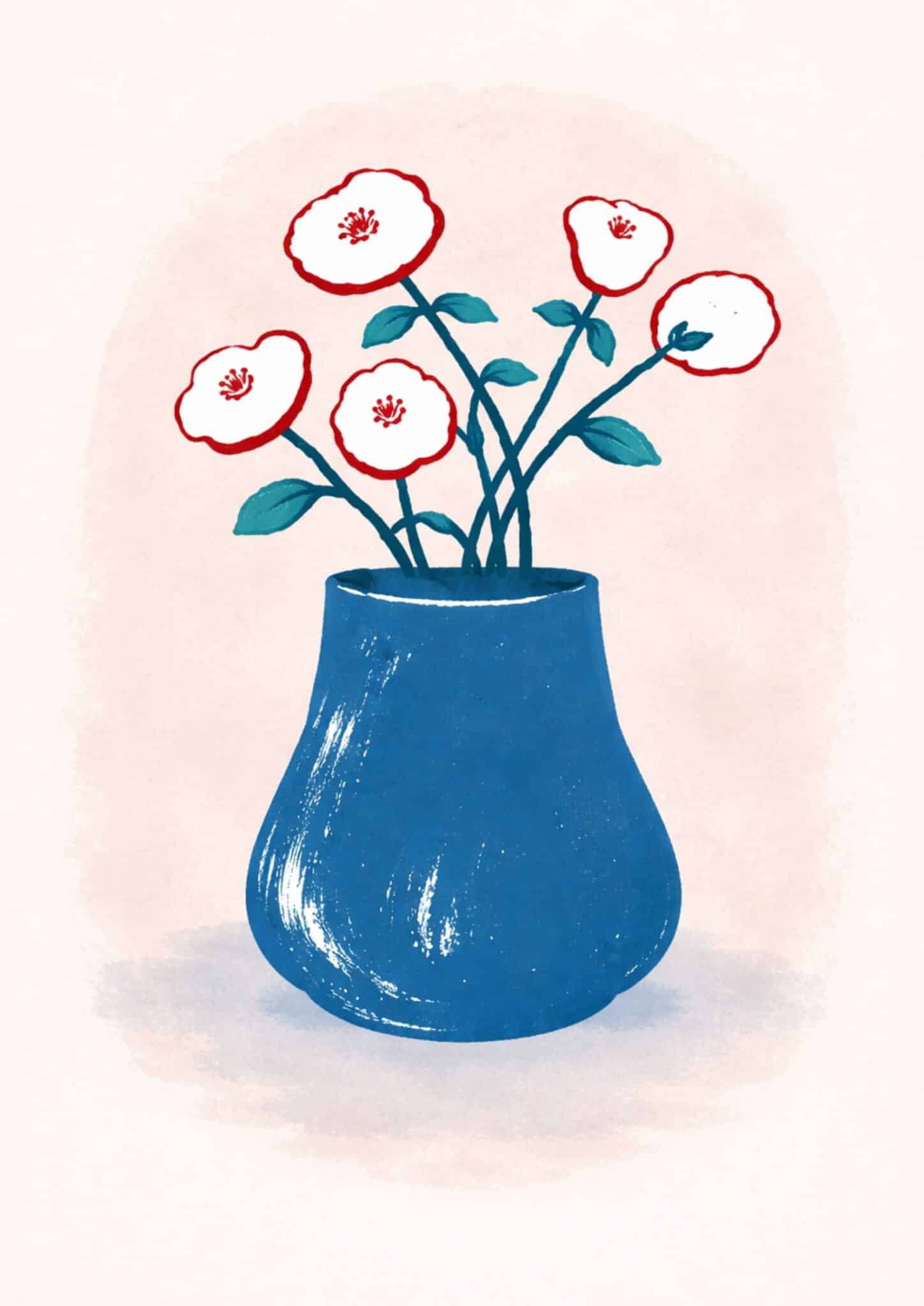 北欧ミニマル 抽象 キャンバスアート|ブルーベース × ホワイトフラワー