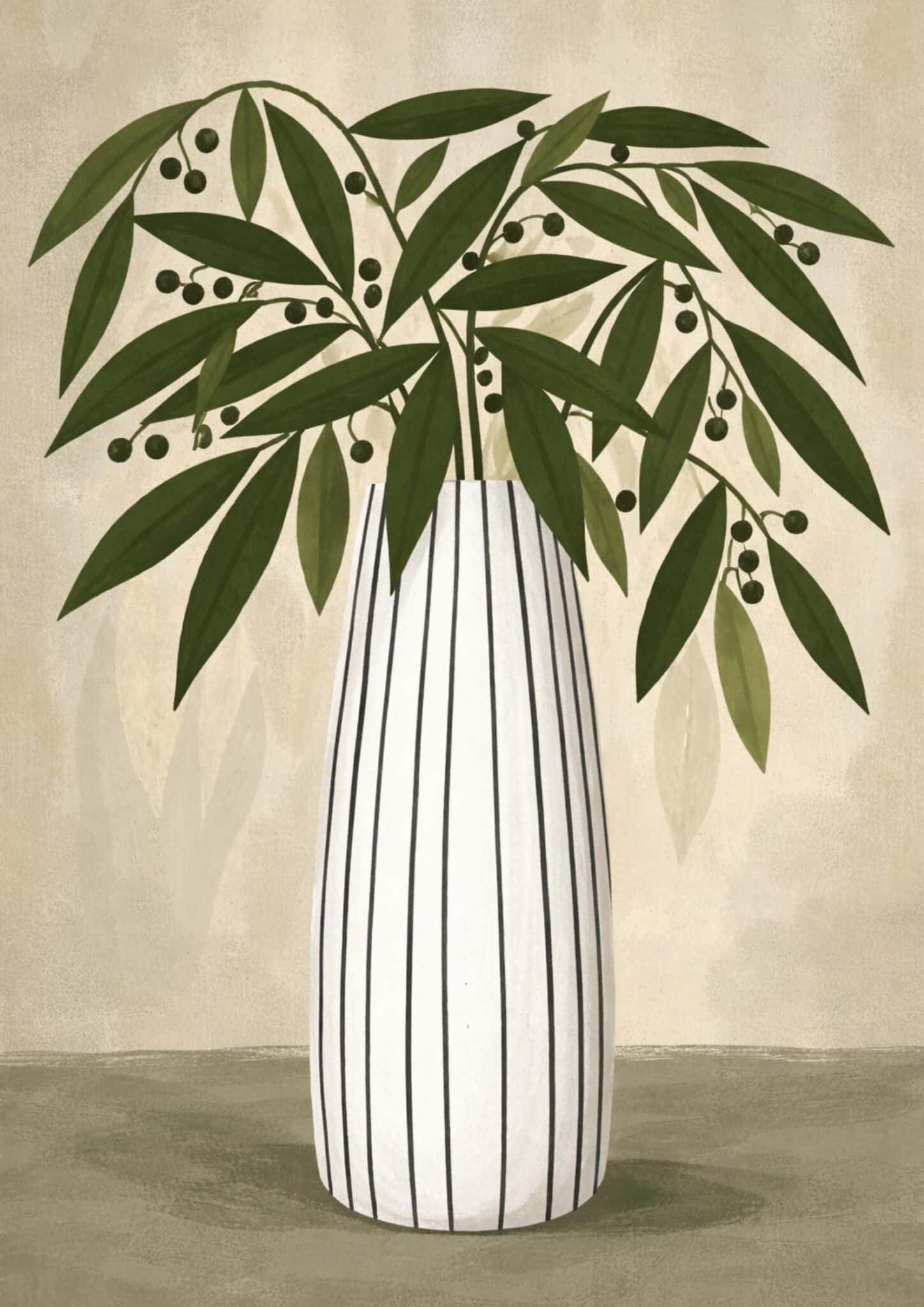 グリーンの葉とシンプルなフラワーベースを描いた