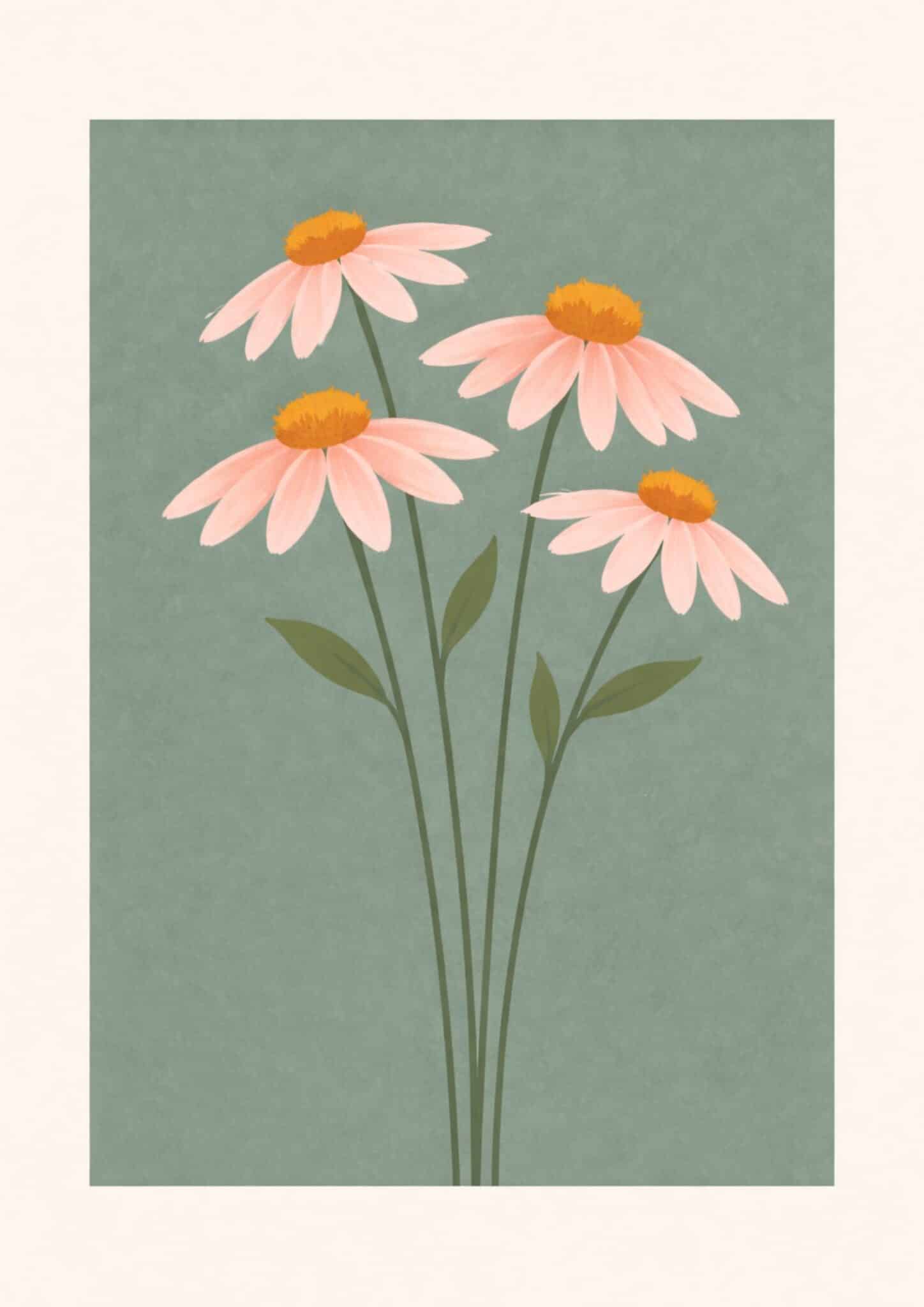 北欧ミニマル 抽象 キャンバスアート|グリーンバック × ピンクフラワー
