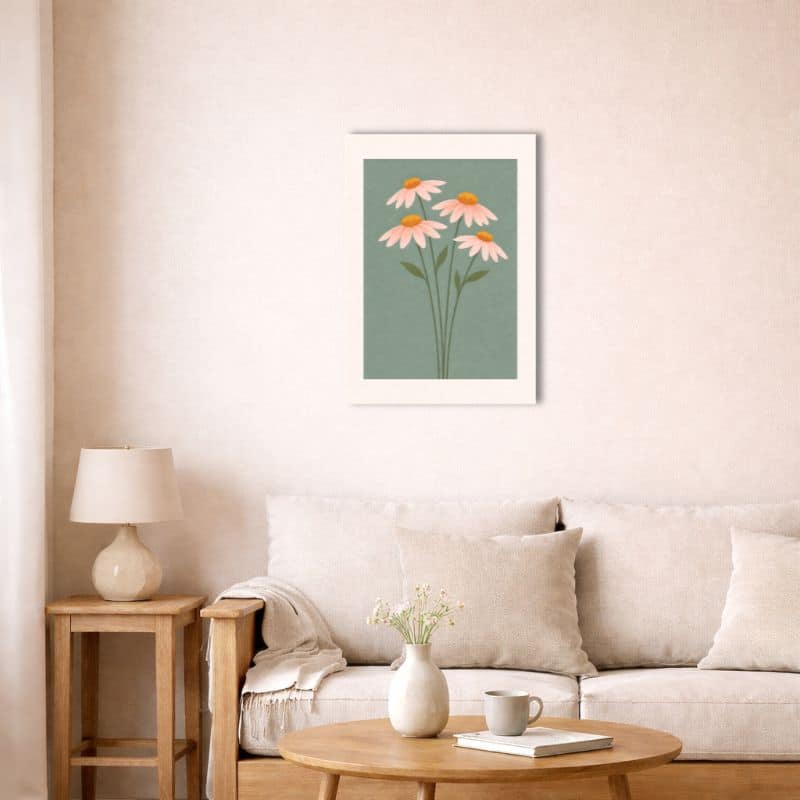 “北欧ミニマル 抽象 キャンバスアート|グリーンバック × ピンクフラワー” の口コミを投稿します