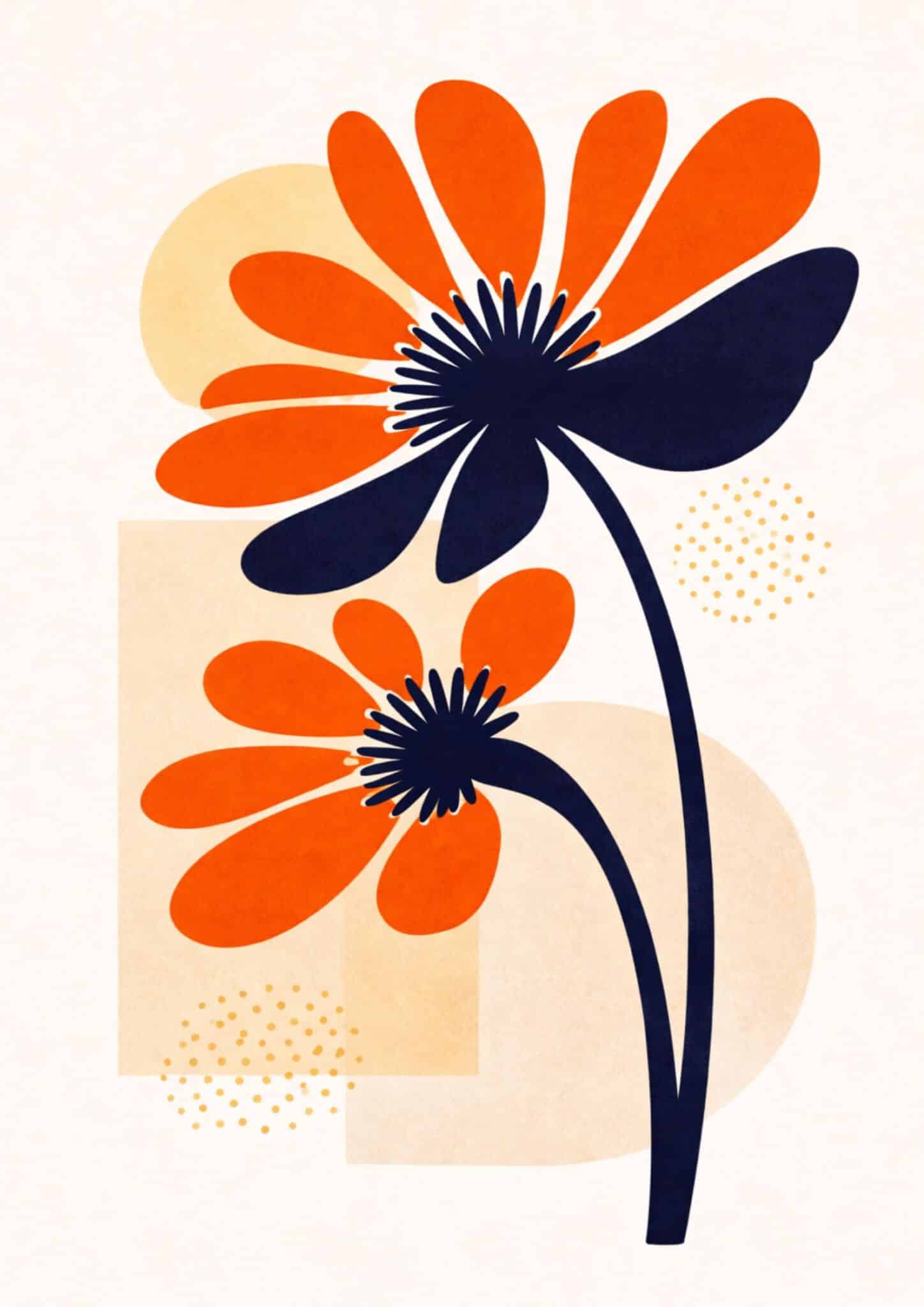 北欧ミニマル 抽象 キャンバスアート|オレンジ × ネイビー フラワーデザイン