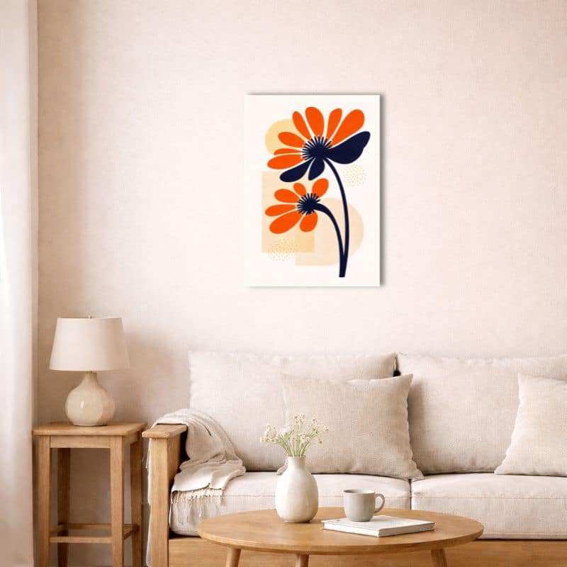 “北欧ミニマル 抽象 キャンバスアート|オレンジ × ネイビー フラワーデザイン” の口コミを投稿します