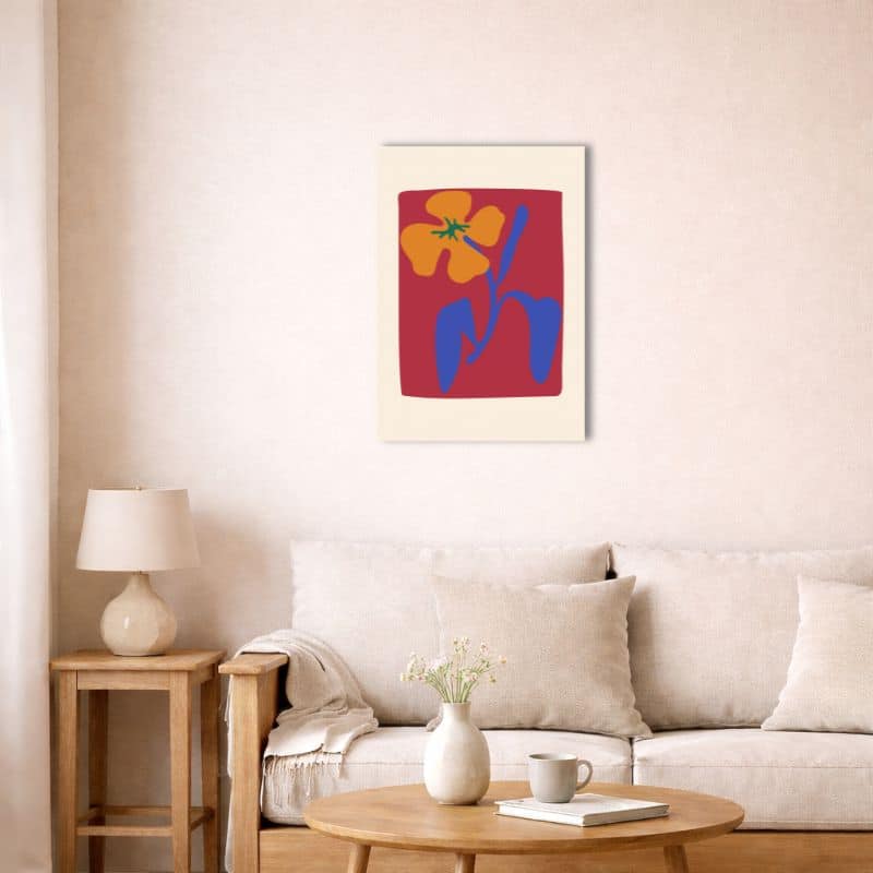 “北欧ミニマル 抽象 キャンバスアート|オレンジフラワーとレッドバックグラウンド” の口コミを投稿します