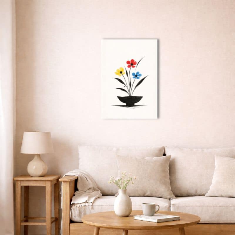 北欧ミニマル 抽象 キャンバスアートが描く静かなフラワーアート