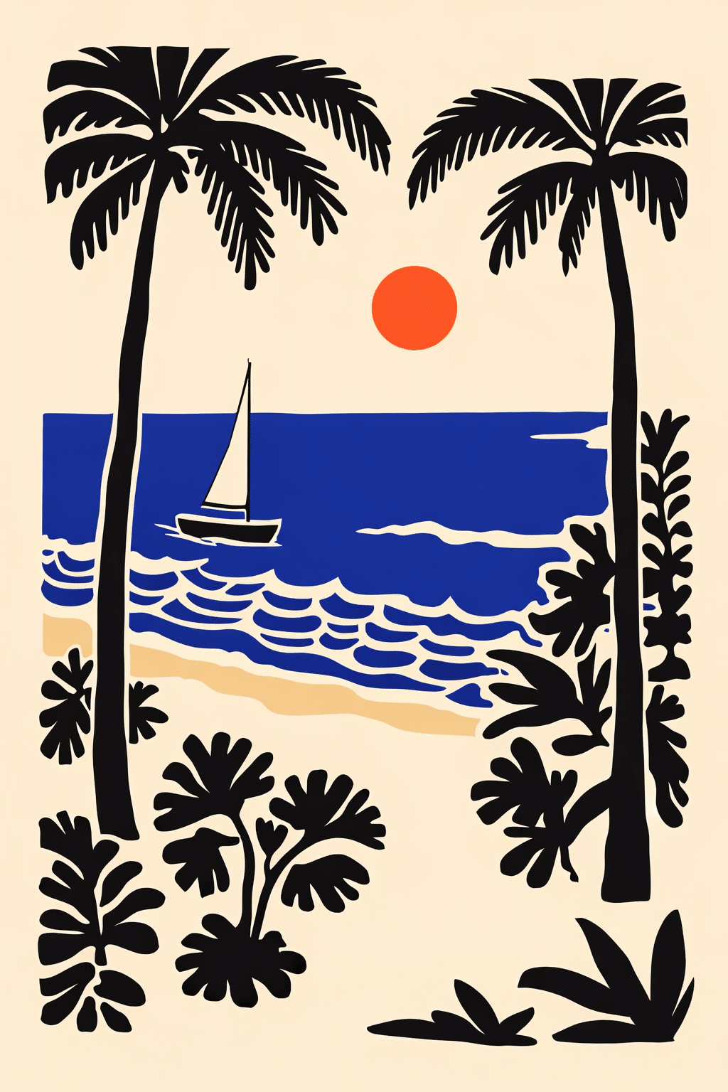 北欧ミニマル 抽象 キャンバスアートのトロピカルビーチデザイン