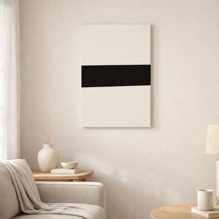 北欧ミニマル 抽象アート|ベージュとブラックの水平ライン