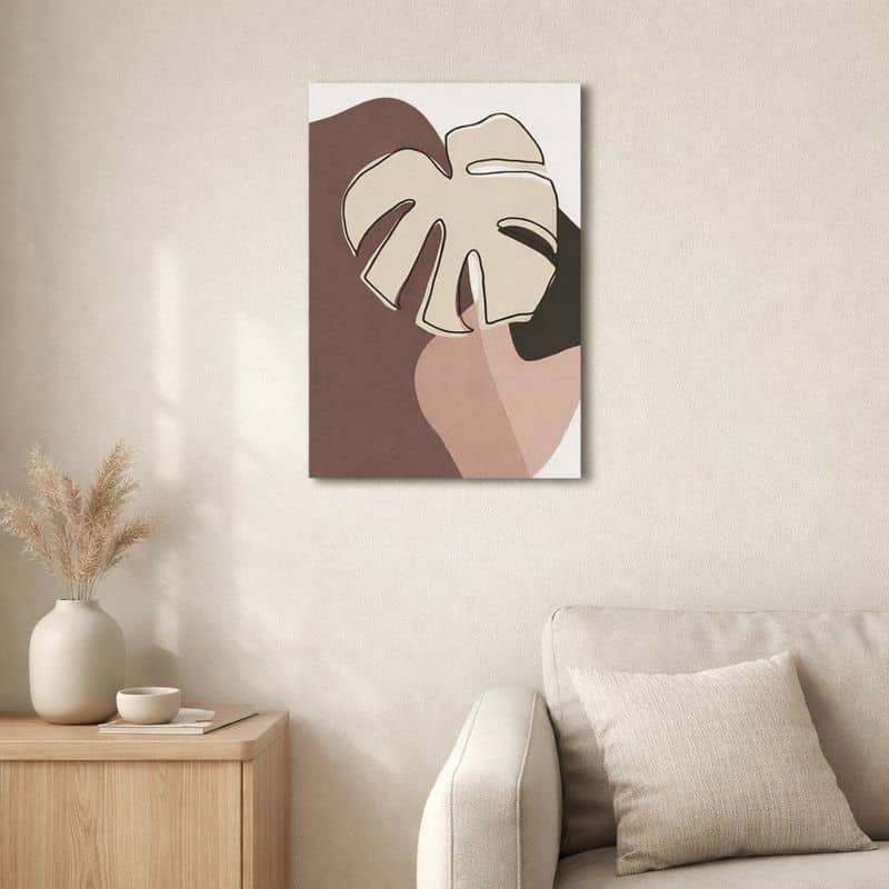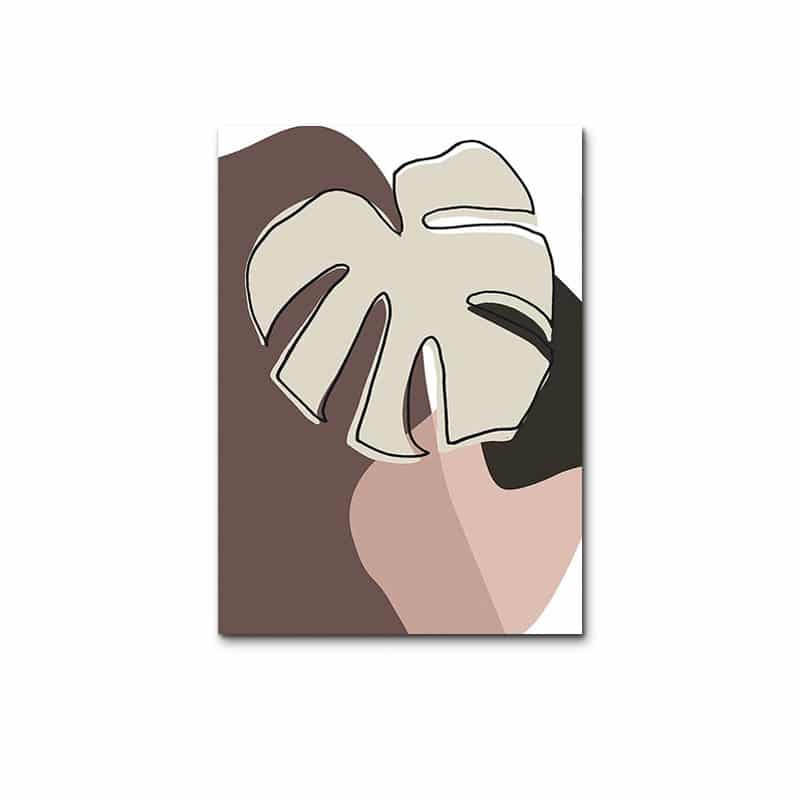 北欧ミニマル ボタニカル キャンバスアート|抽象リーフとレイヤード配色
