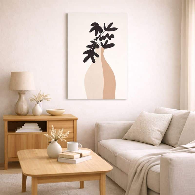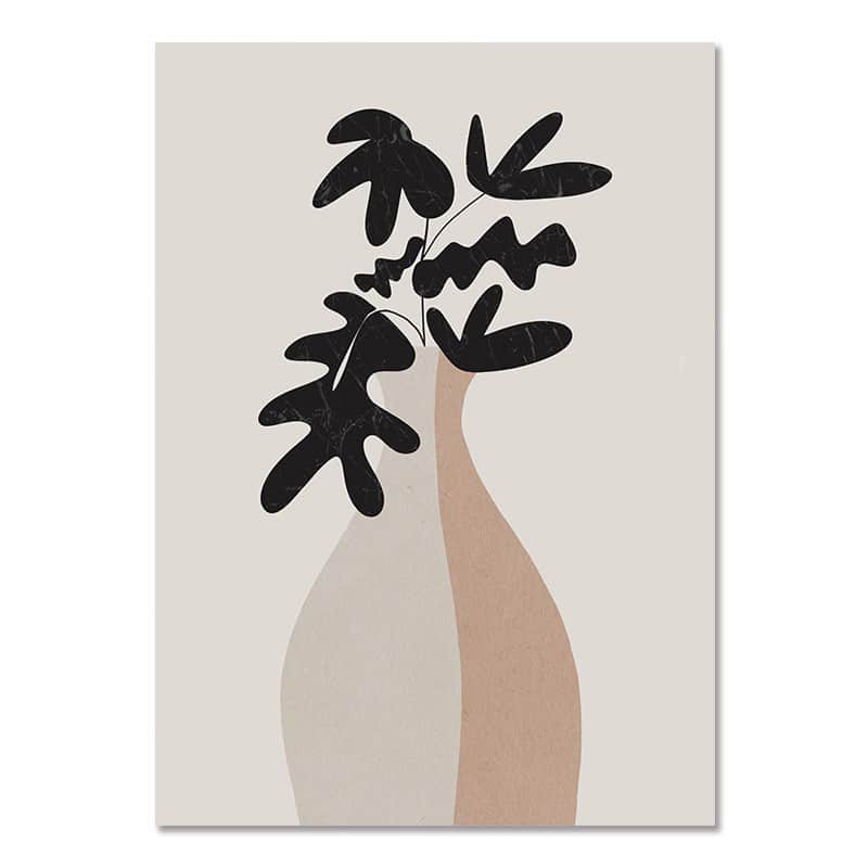 北欧ミニマル ボタニカル キャンバスアート|シルエットリーフとフラワーベース