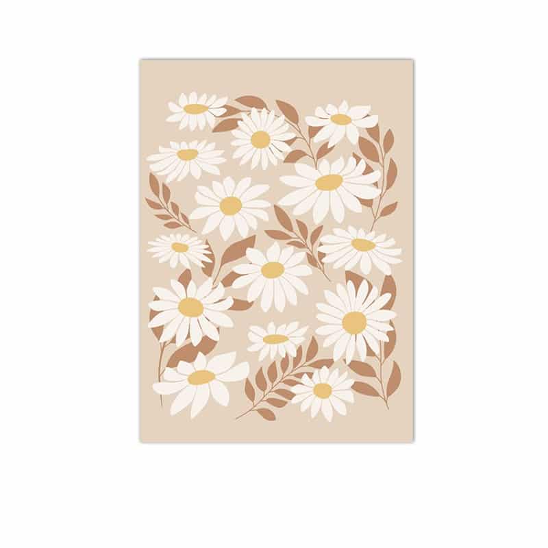北欧ミニマル フラワー キャンバスアート|デイジーパターン ベージュトーン