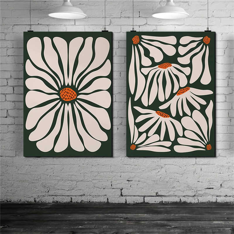 ピンクの背景にオレンジの花が咲く、柔らかな印象の北欧ナチュラル ポスター。