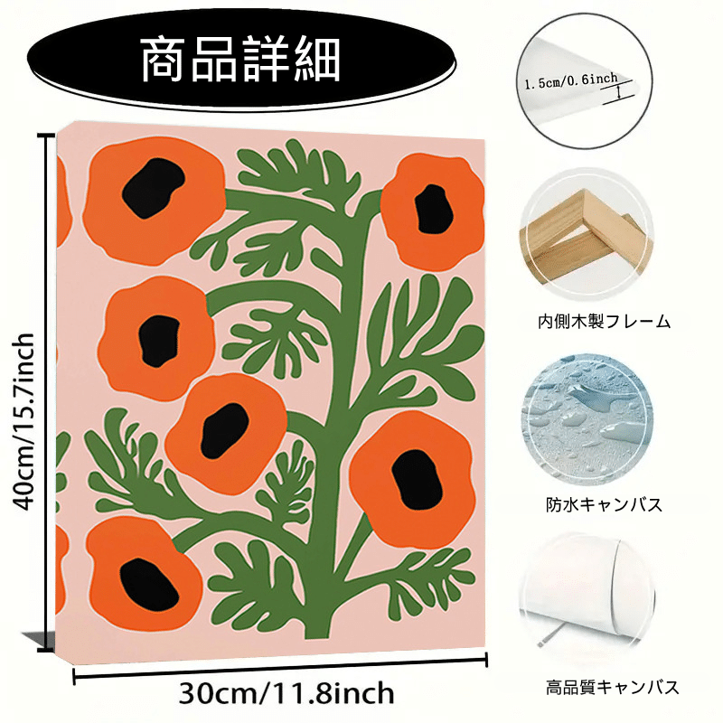 『ピンクポピー』は、やわらかな色合いと力強い花のモチーフが特徴の北欧ナチュラル ポスターです。