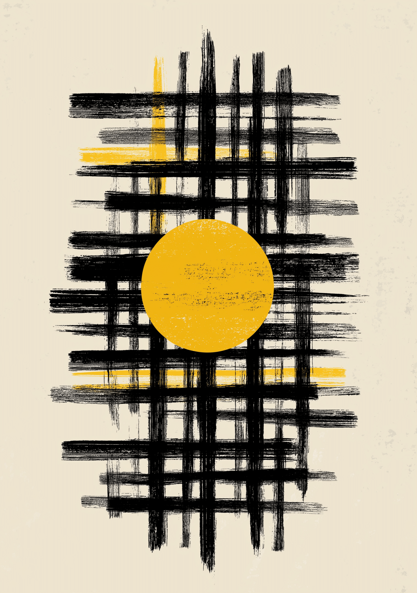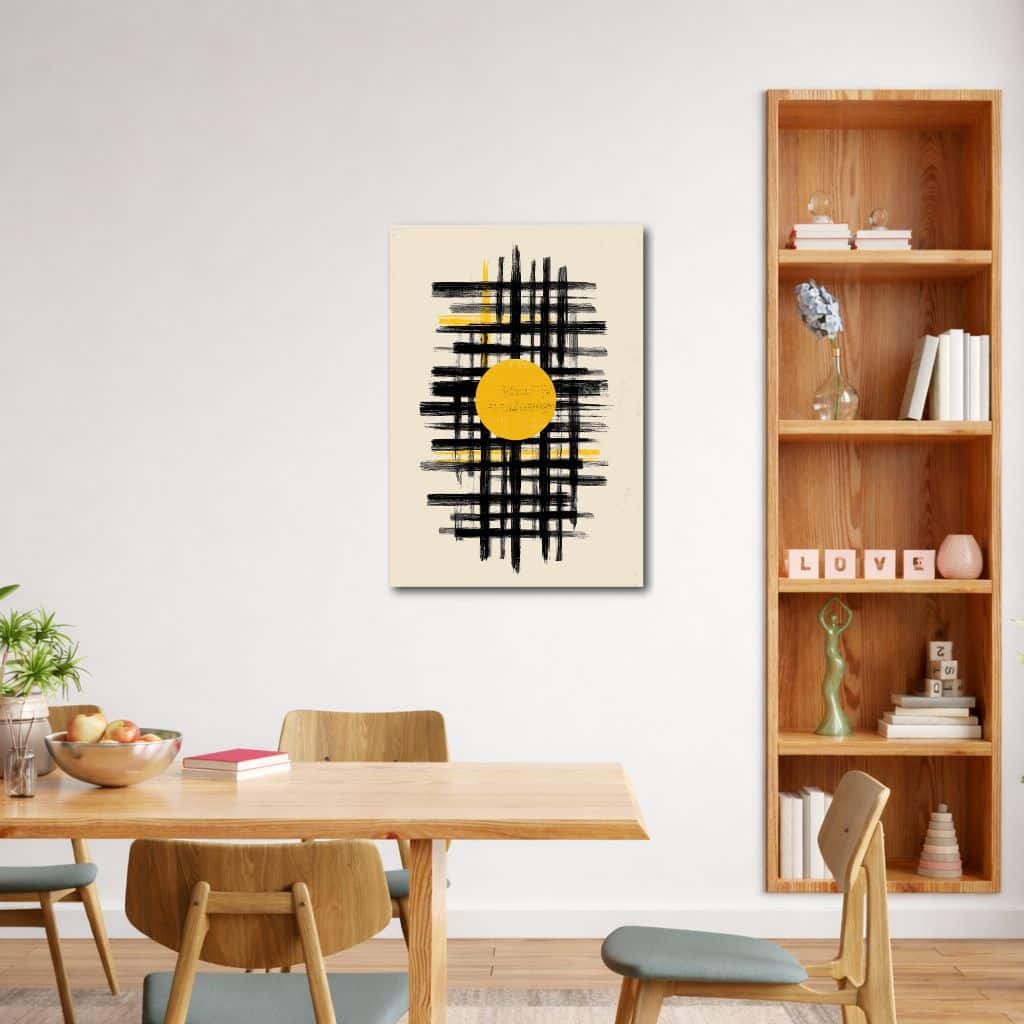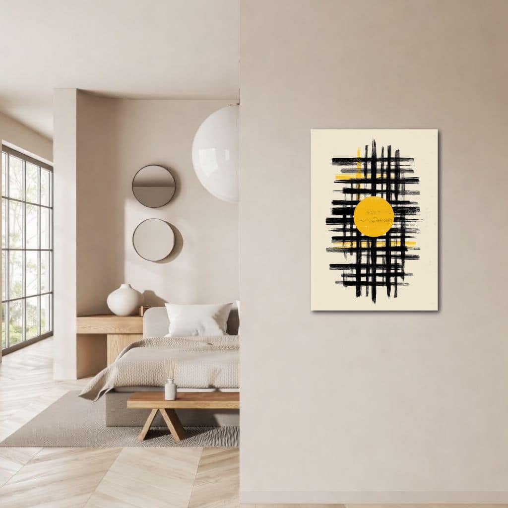 北欧ミニマル 抽象 キャンバスアート|イエローサークル グリッド
