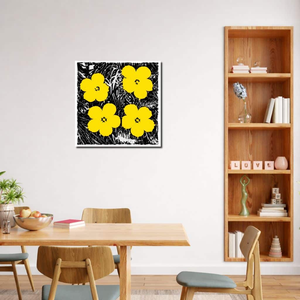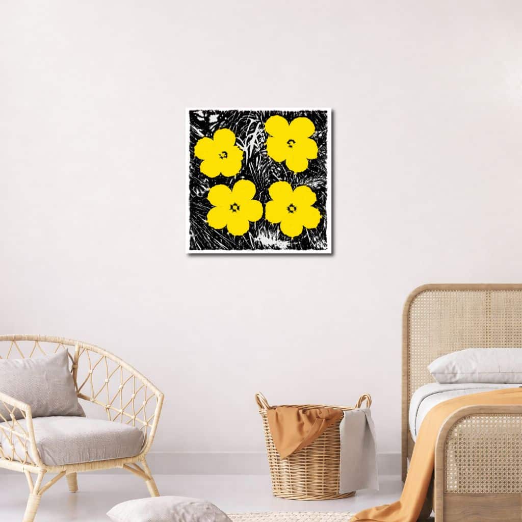 イエローフラワー シルエット キャンバスアートのカラーコントラスト